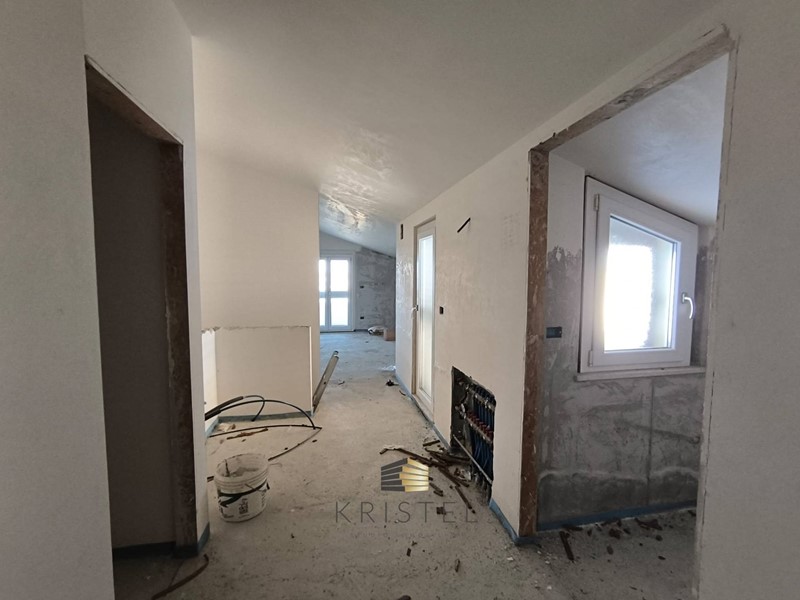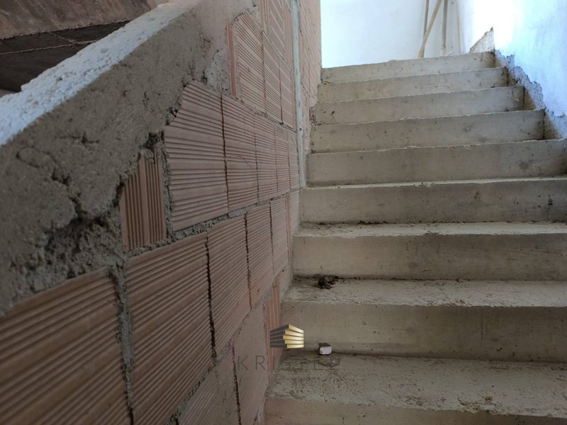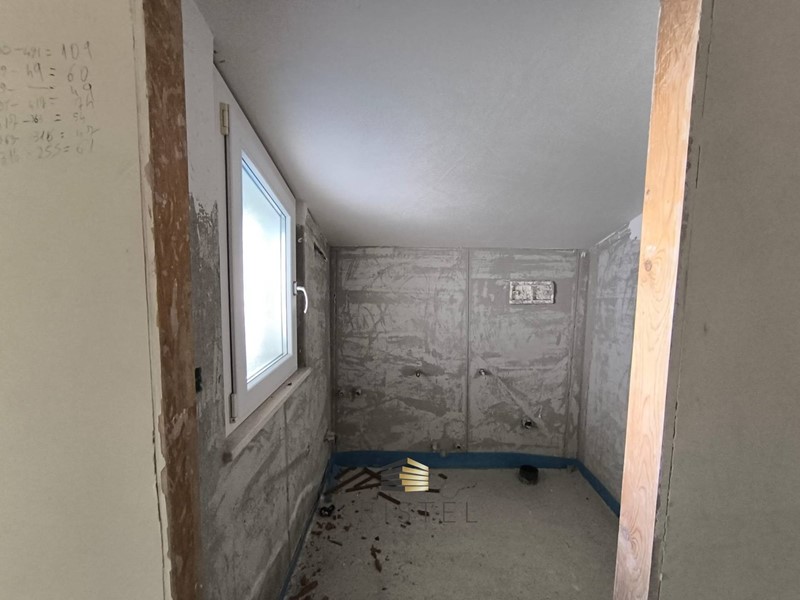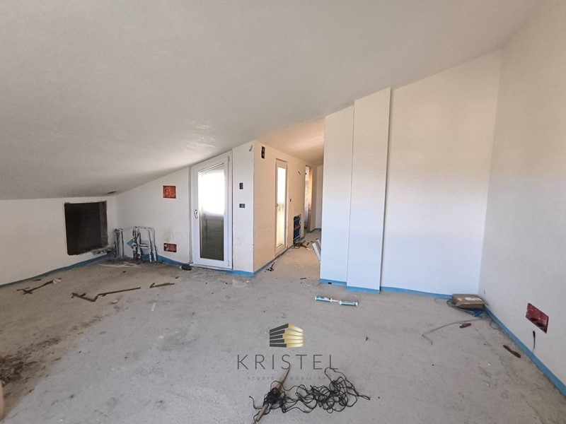 E' strutturata su quattro livelli: al piano primo appartamento composto progettualmente da ingresso, soggiorno con angolo cottura, disimpegno, bagno, due camere da letto e wc padronale; al piano superiore mansardato locale di sgombero e ripostiglio con possibilità di recupero abitativo e divisione per ulteriori due camere, lavanderia e bagno.