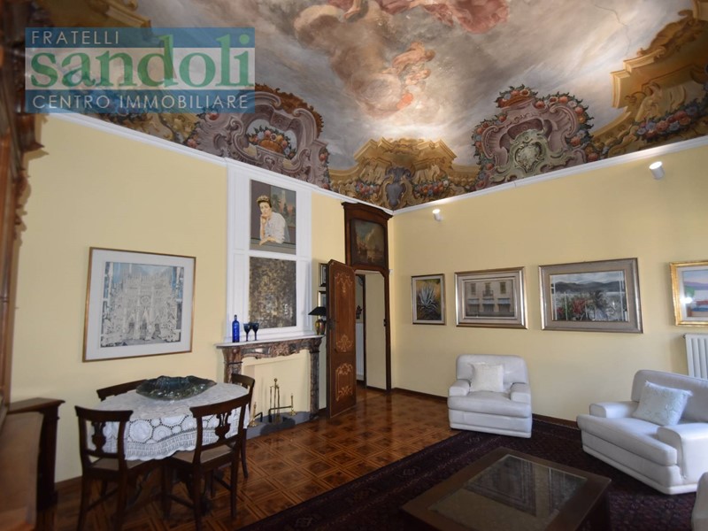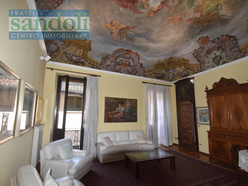 All'interno di un antico palazzo posto nel centro storico di Santhià proponiamo stupendo appartamento con locali affrescati posto al primo ed ultimo piano con piano sottotetto collegato internamente.