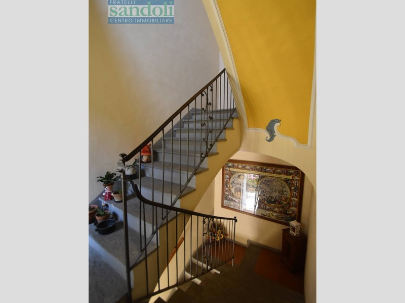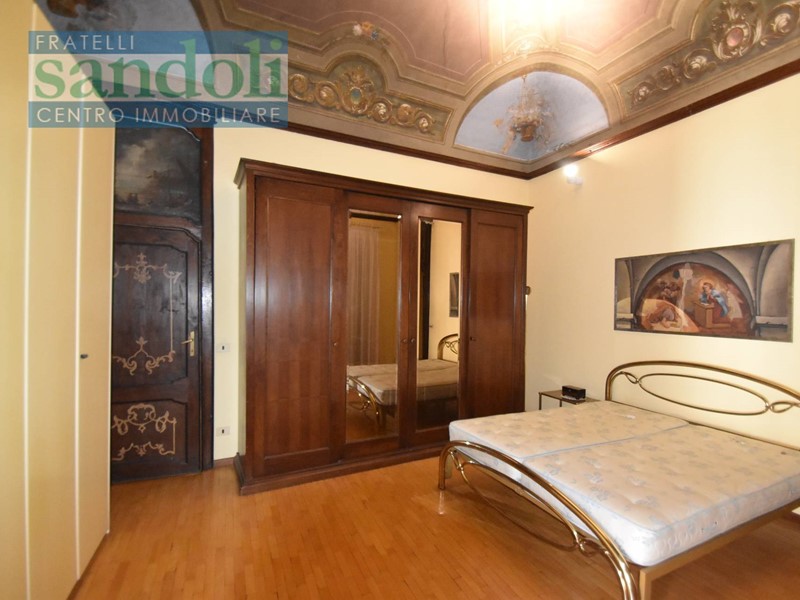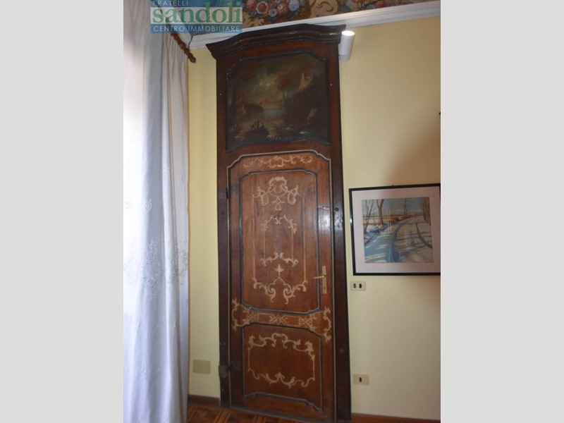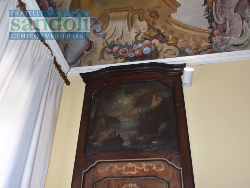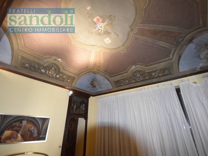 Posto al primo piano, tramite una scalinata in pietra con passamano in ferro battuto raggiungiamo l'appartamento, dall'ingresso molto spazioso possiamo comodamente entrare, tramite antiche porte riccamente lavorate e dipinte, nel fantastico salone con soffitto stupendamente affrescato e con la presenza di un camino con cornice in marmo, sicuramente non passa inosservato l'introvabile pavimento in legno finemente cesellato. Successivamente accediamo alla cucina molto grande, che da la possibilità di creare anche una zona soggiorno, e con l'accesso all'antibagno ed al bagno con la presenza della doccia, della vasca e della zona lavanderia, il tutto a completare la zona giorno. La zona notte, presente al piano d'ingresso è composta da una camera da letto molto ampia anch'essa contraddistinta dal soffitto affrescato e dalla pavimentazione in legno.