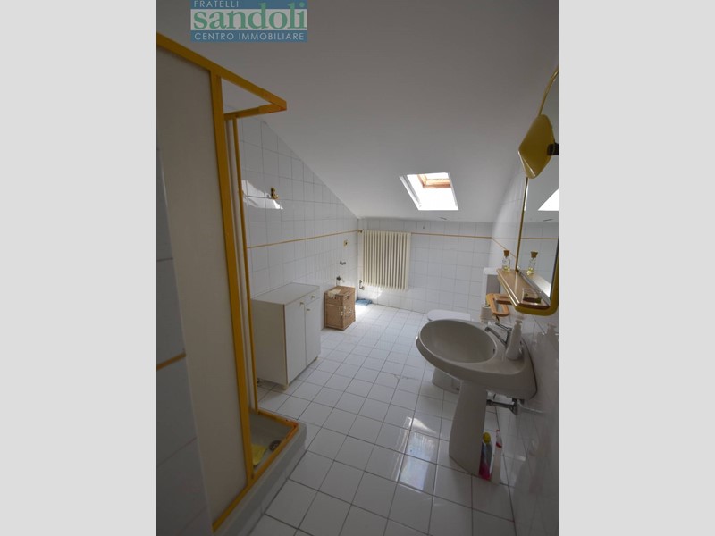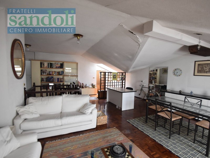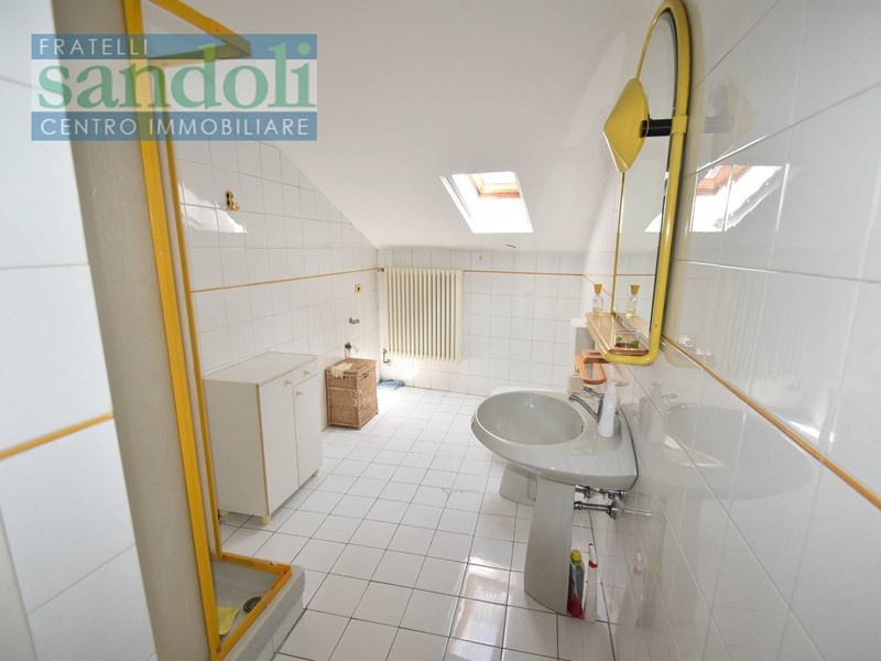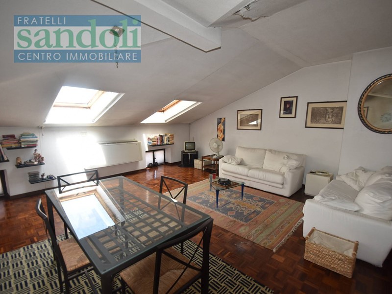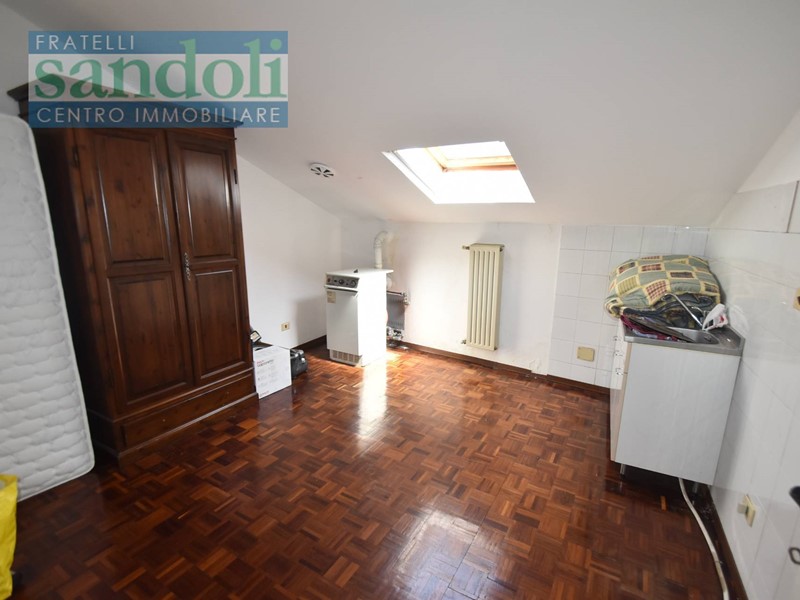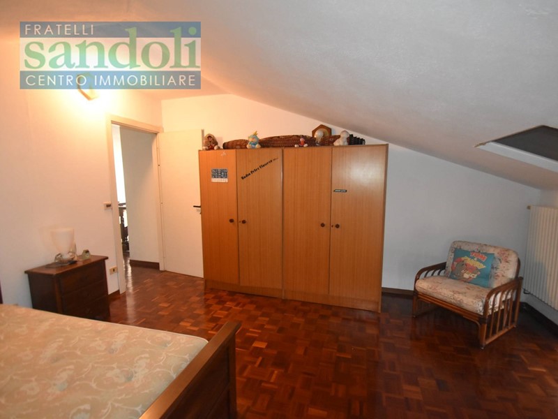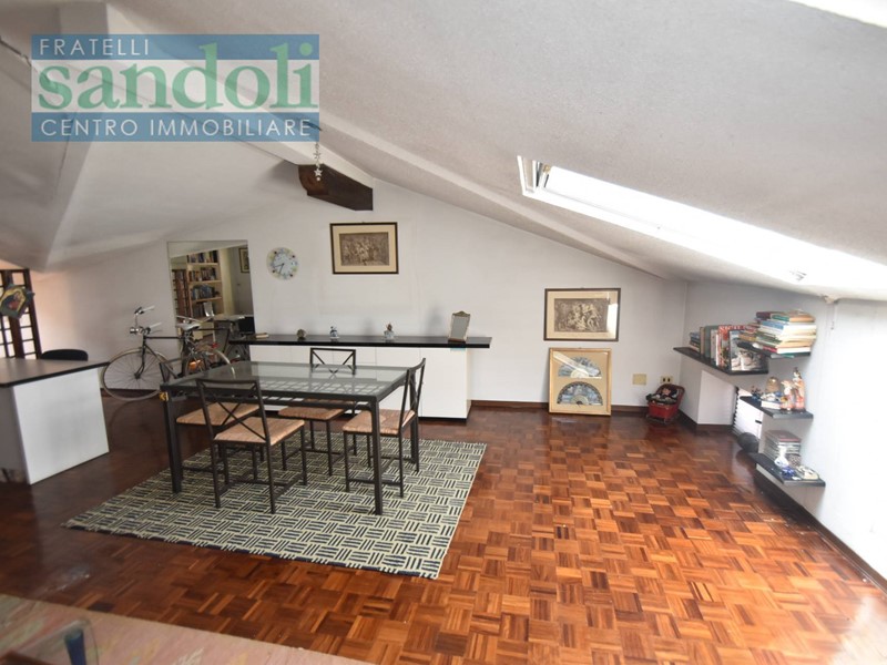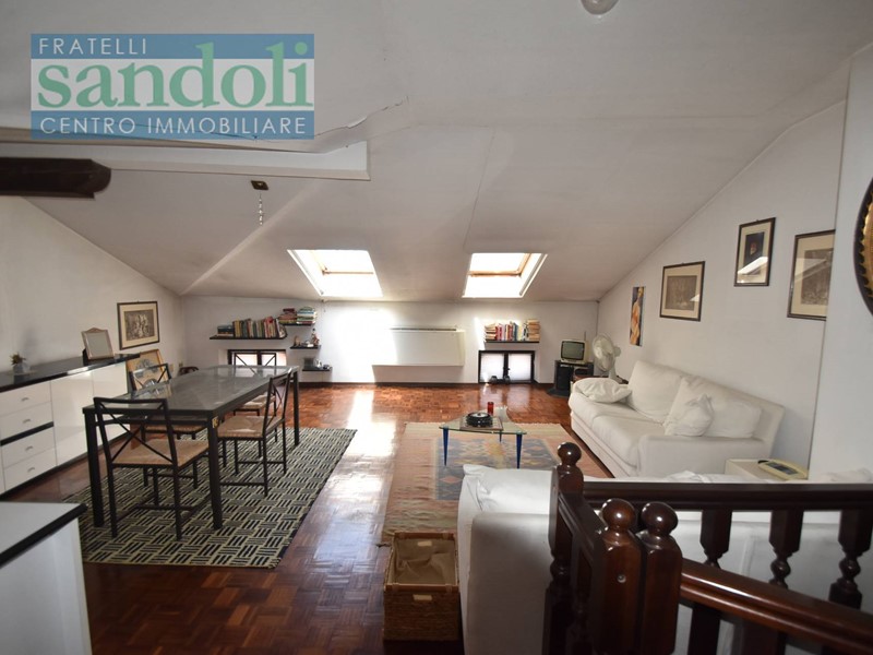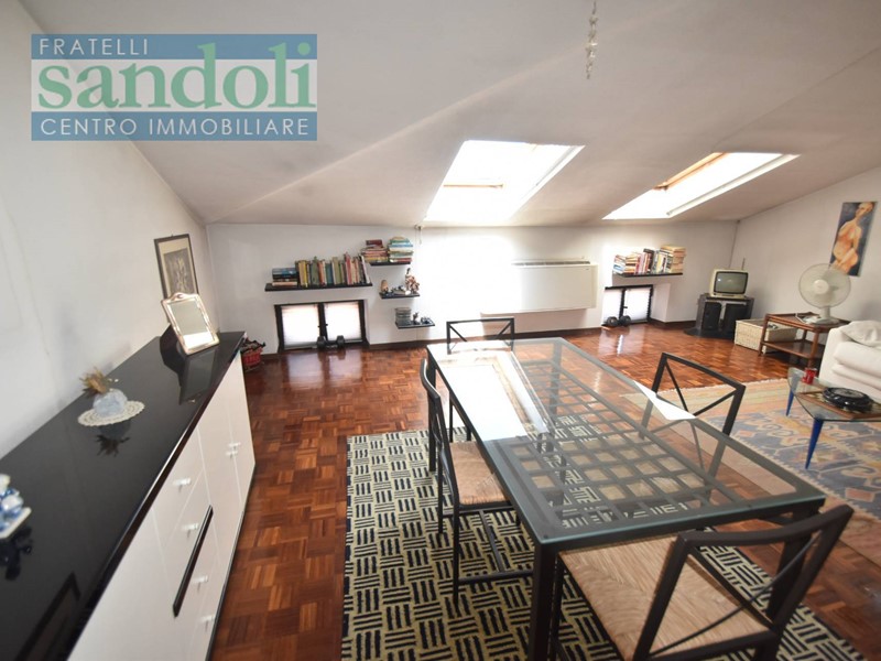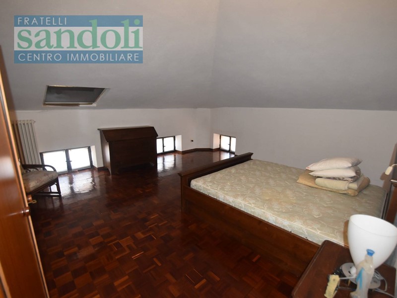 Salendo poi tramite una scala a chiocciola in legno completamente lavorata, accediamo al piano sottotetto, attualmente composto da un grande soggiorno, eventuale cucina o lavanderia, la camera matrimoniale ed il bagno con la doccia. Tutti i locali sono provvisti di finestre Velux e termo convettori per il riscaldamento invernale. Da sottolineare che il piano in questione ha un proprio ingresso, raggiungibile dal proseguimento della scala da cui si accede al piano sottostante.