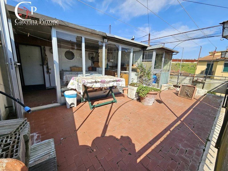 L'immobile è così composto: ampio ingresso, cucina abitabile, soggiorno, tre camere, bagno, ripostiglio, terrazza abitabile privata in parte con veranda condonata dotata di forno a legna, oltre a soffitta. Completano la proprietà box auto di mq.18 circa e giardino/orto privato di mq.90 circa staccato dall'abitazione.