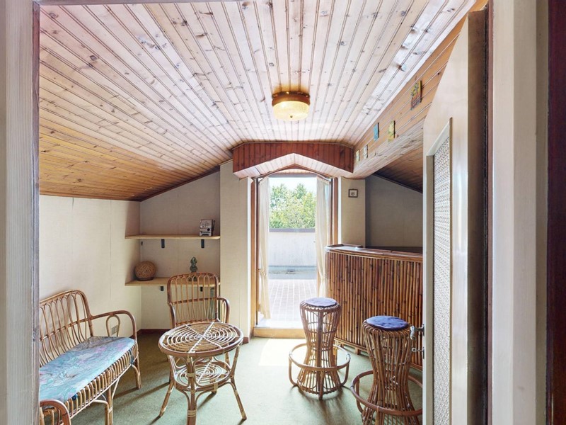 A servizio della villa due bagni con doccia e vasca. Al piano superiore un locale multiuso offre uno spazio versatile che oggi la proprietà ha destinato a locale studio e hobby, dotato di panoramico terrazzo.