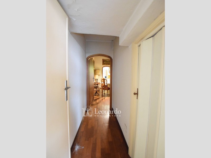 Una scala in marmo originale dellepoca conduce al primo piano, dove si apre un elegante disimpegno. Lappartamento si sviluppa con una cucina ampia e luminosa, tinello, sala da pranzo con terrazza sul giardino, due grandi camere matrimoniali, una terza camera, bagno e balcone frontale.