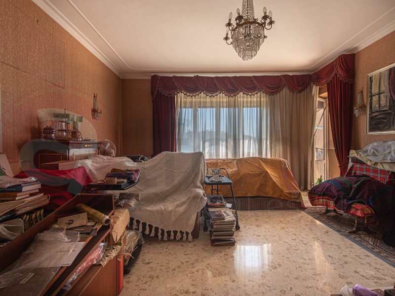 Il soggiorno, anch'esso molto ampio e luminoso, rappresenta il cuore dell'appartamento, con abbondante luce naturale che entra attraverso le finestre, creando un ambiente accogliente e vivibile.
