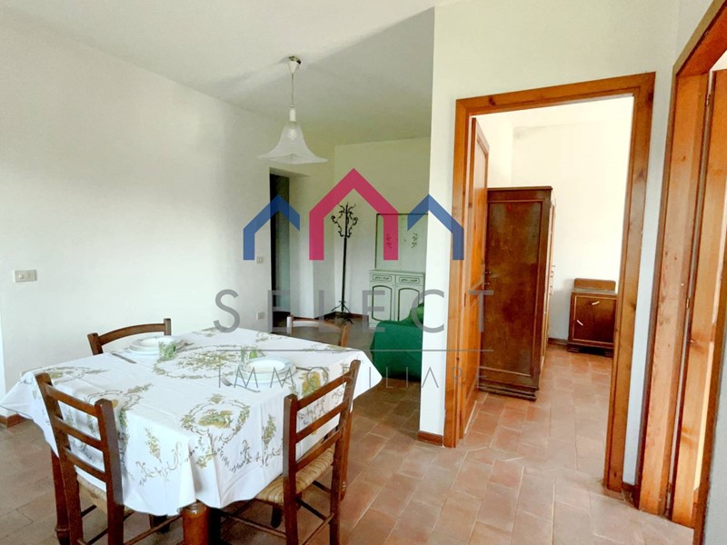 Si accede alla casa dalla strada antistante e da resede condominiale. L'ingresso e le scale sono a comune ad altro appartamento della stessa proprietà posto allo stesso piano, per cui sarebbe anche possibile acquistarli entrambi ed essere proprietari esclusivi della loggia di ingresso, che è molto caratteristica perché riprende con la pietra, il cotto ed il legno dei travi le classiche tipologie dei casali toscani.
