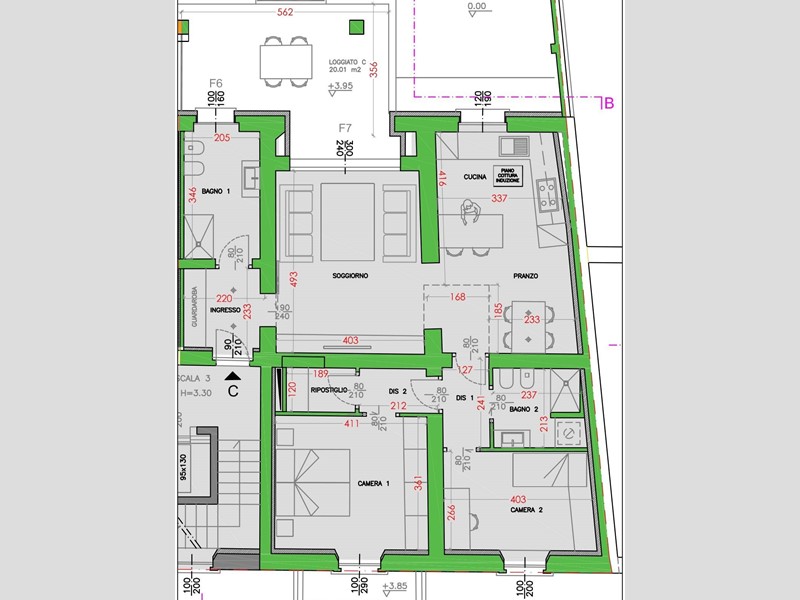 Il Nuovo Appartamento proposto in vendita a Legnano, è identificato nella planimetria con la lettera B; per quanto riguarda la metratura è di circa 83 mq. commerciali.