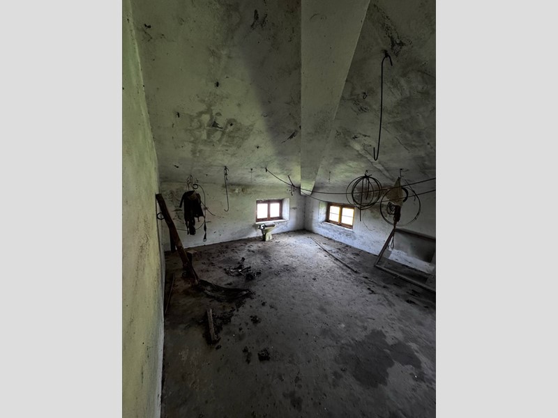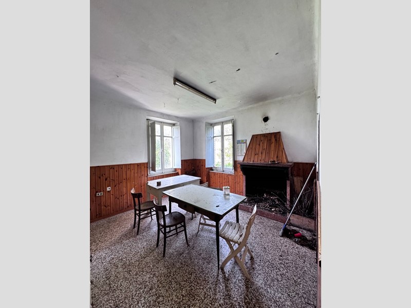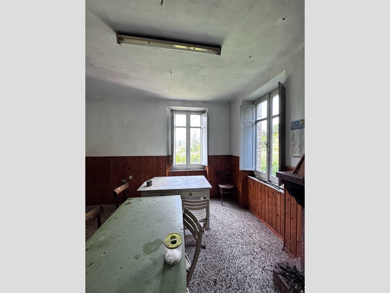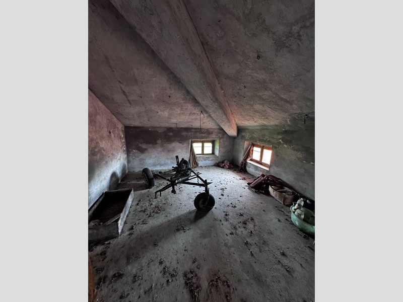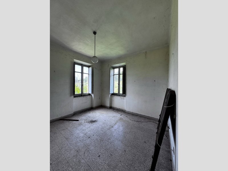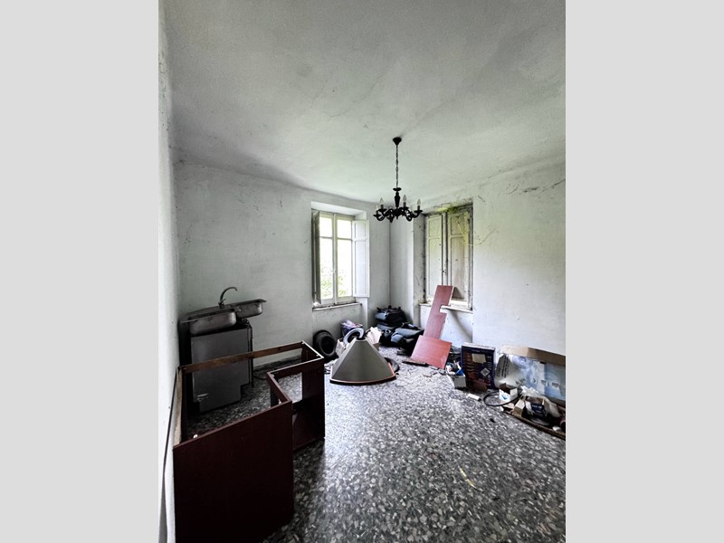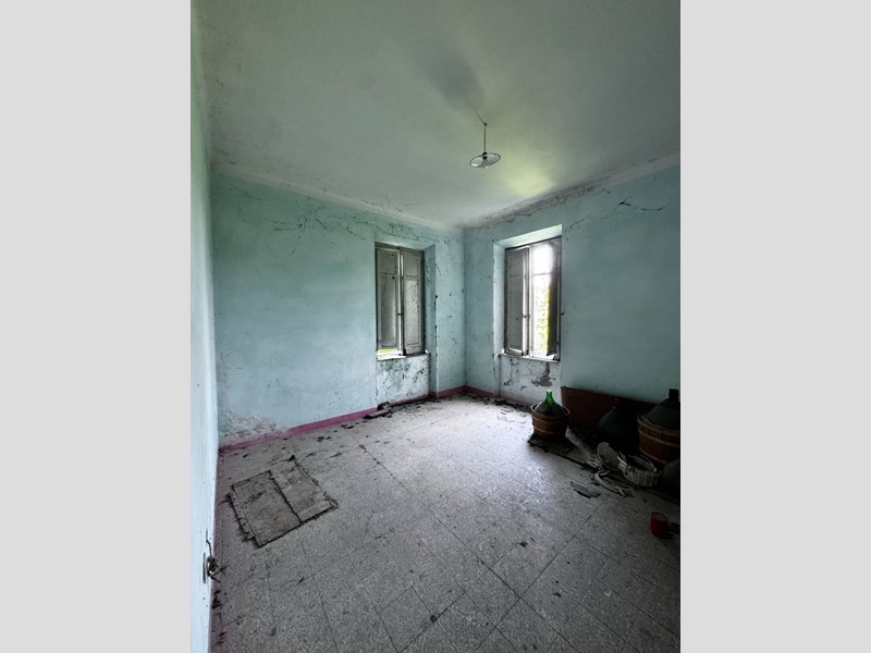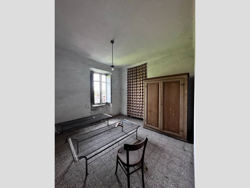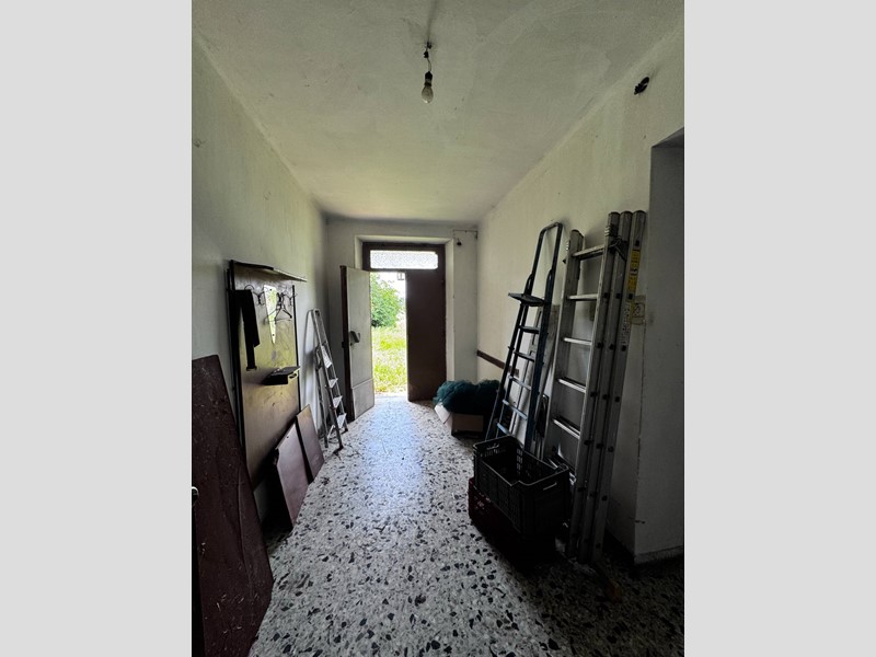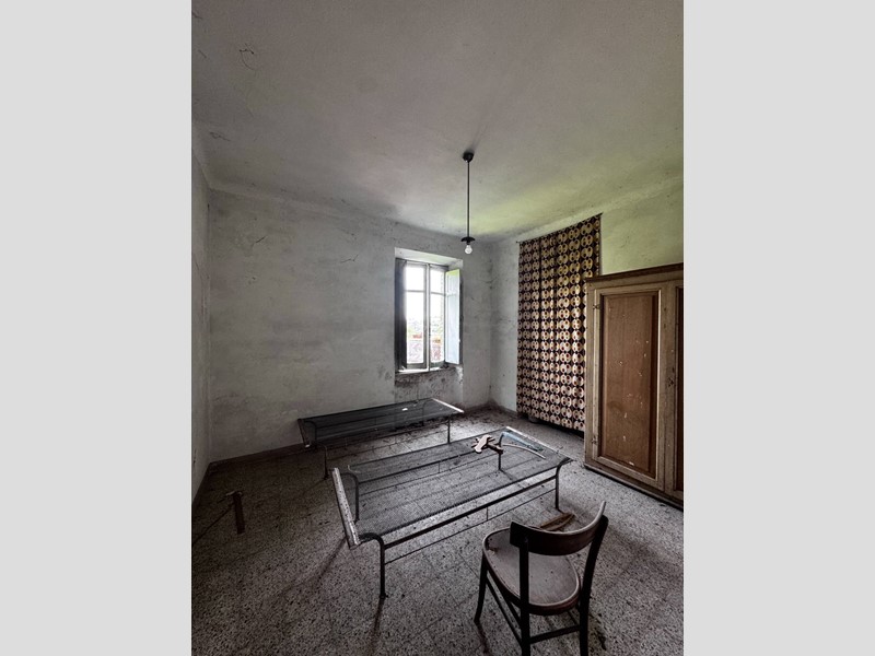 La casa disposta su più piani per un totale di 266 mq si presenta da ristrutturare, è libera su tre lati ed ha un muro in aderenza con altra proprietà, sulla corte sussistono due grandi strutture adiacenti con destinazione C/6 (garage) rispettivamente di 142 e 154 mq, anch'esse da ristrutturare. La corte è esclusiva con strada di accesso privata (attualmente ricoperta d'erba), la proprietà comprende un terreno agricolo adiacente di 17.510 mq.