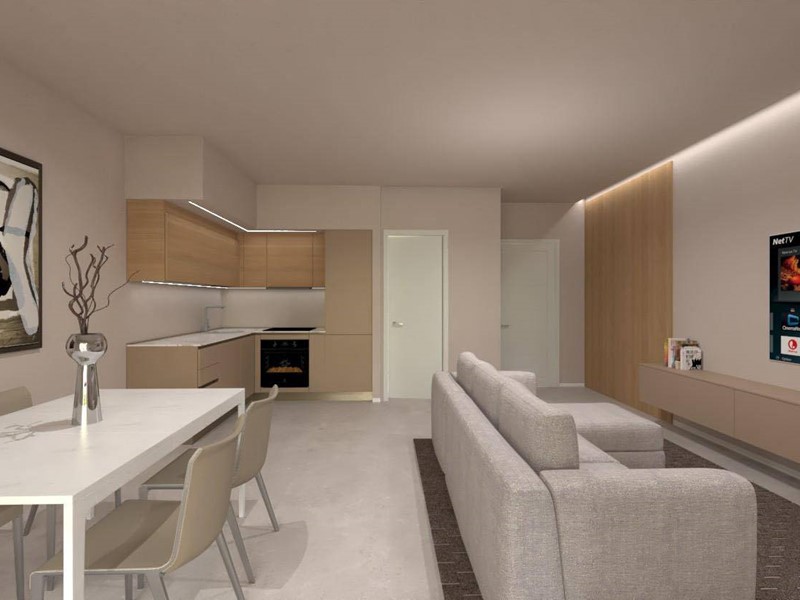 - Spazio ben distribuito: ingresso, soggiorno con angolo cottura, 2 camere, 2 bagni e terrazzini