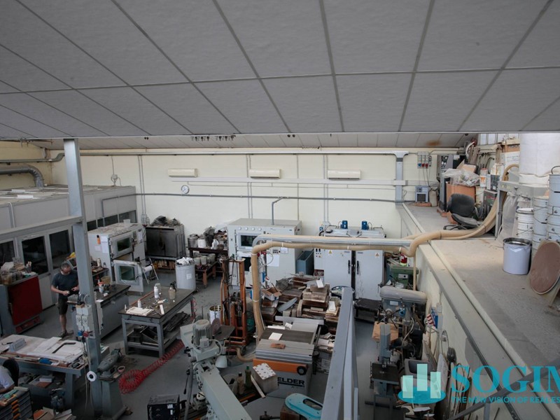 L'immobile presenta un soppalco di ca. 40 mq e garantisce ampia luminosità avendo la copertura del tetto a shed.