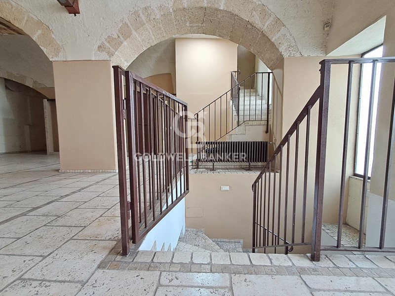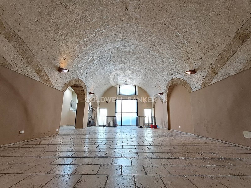 Al piano terra vi è un ampio vano, scavato nella roccia, e tre ambienti separati, utilizzabili come ufficio ed un bagno. Piano 1°: due ampi ambienti, uno a volte a stella e grandi finestre, altro con volta a botte. Dalle scale in pietra si giunge al piano interrato dove troviamo un ampio vano con volte a botte luminoso. E presente un camino.