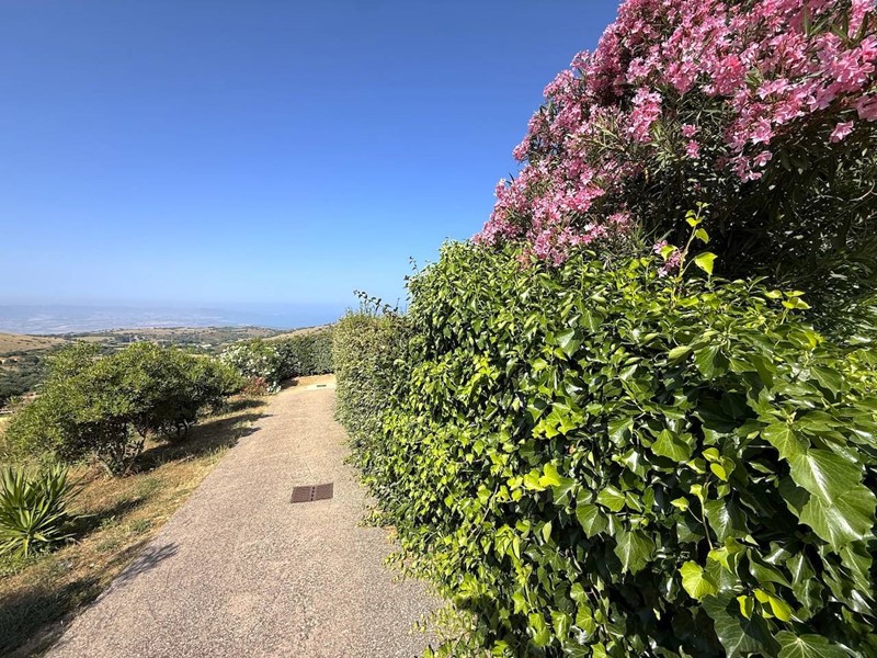 L'immobile, situato in posizione leggermente rialzata rispetto al piano strada, è composto da una scalinata di ingresso che porta sull'ampia veranda da cui si ammira il fantastico panorama e che si collega al giardino.