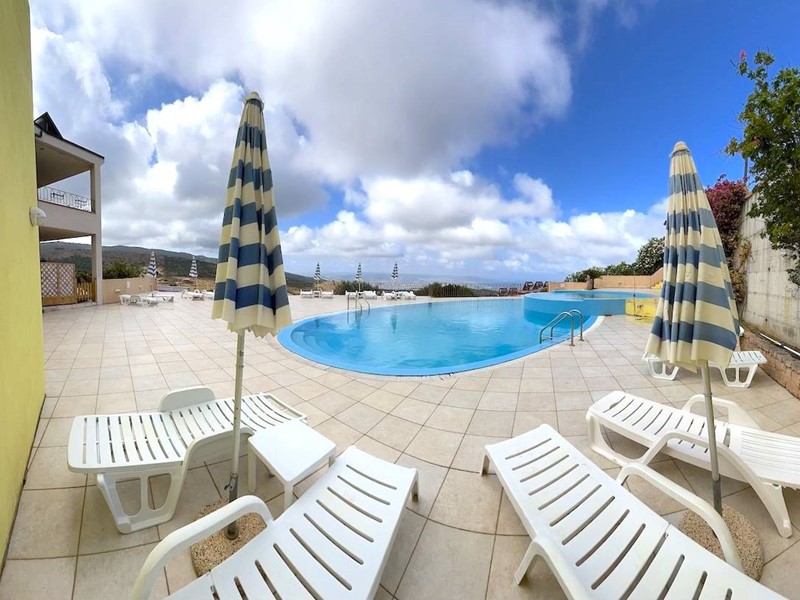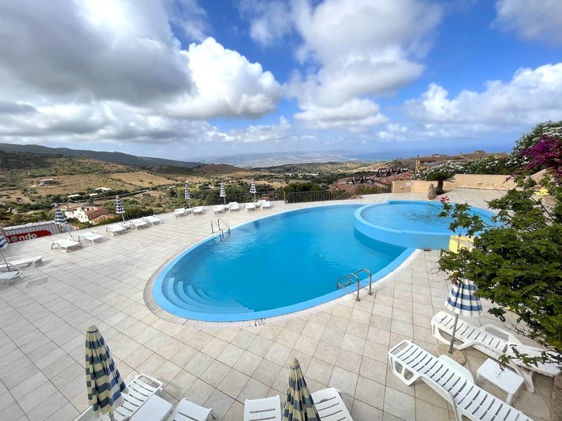 Piscina condominiale con vista mare.