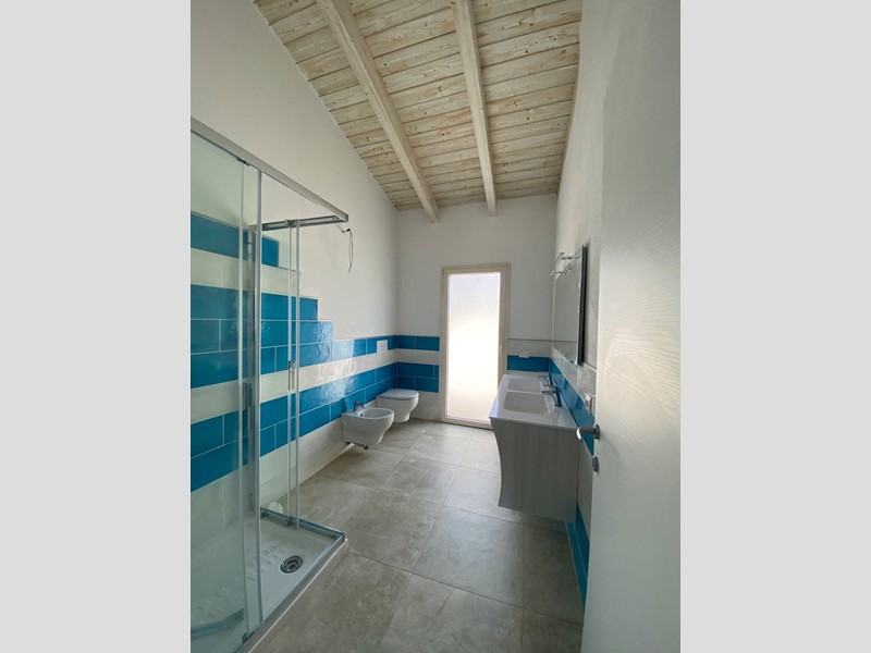 Le abitazioni vengono costruite ad alta efficienza energetica, in classe A, ove lisolamento termico è garantito da pareti di NORMABLOK a taglio termico, da tetti isolati realizzati con travi di legno bianco spazzolato a vista e da infissi e serramenti in alluminio a taglio termico.