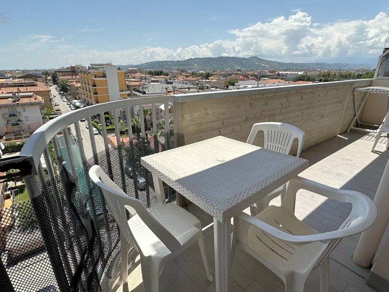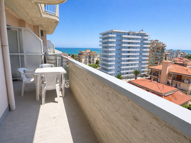 Appartamento a soli 80 mt dalla spiaggia, delle dimensioni di 36 mq circa, posizionato al piano sesto con ascensore , composto da un unico ampio vano dove con degli arredi è stato ricavato un soggiorno con angolo cottura, camera da letto, bagno con doccia ed ampio balcone di 12 mq circa molto panoramico vista mare e collina. L'unità immobiliare, in ottimo stato interno, con pavimentazione in gres porcellanato, infissi in alluminio con doppio vetro, portone d'ingresso blindato, impiantistica completamente a norma è all'interno di un bell'edificio con servizi e negozi tutti raggiungibili a piedi. Completa la proprietà una cantina ed un garage posti al piano seminterrato. E' una soluzione perfetta per le vacanze ed anche come investimento con la formula AFFITTO GARANTITO da parte dell'agenzia.