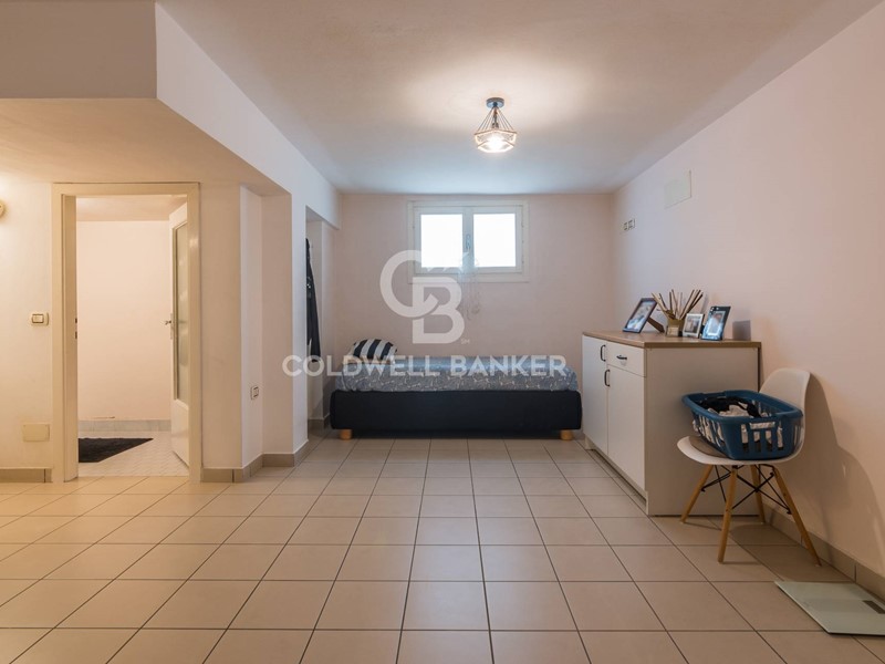 Il piano seminterrato ospita una spaziosa taverna polifunzionale, ideale come sala hobby o home office, dotata di un secondo bagno che funge anche da lavanderia. Da qui si ha accesso al box auto doppio di circa 40 mq.