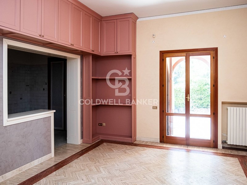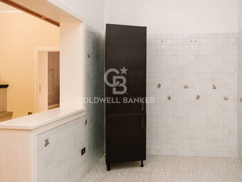 Piano terra: ingresso, cucina abitabile (equipaggiata ma non arredata), elegante sala da pranzo con camino, ampio salone con finiture depoca, bagno e accesso alla veranda.