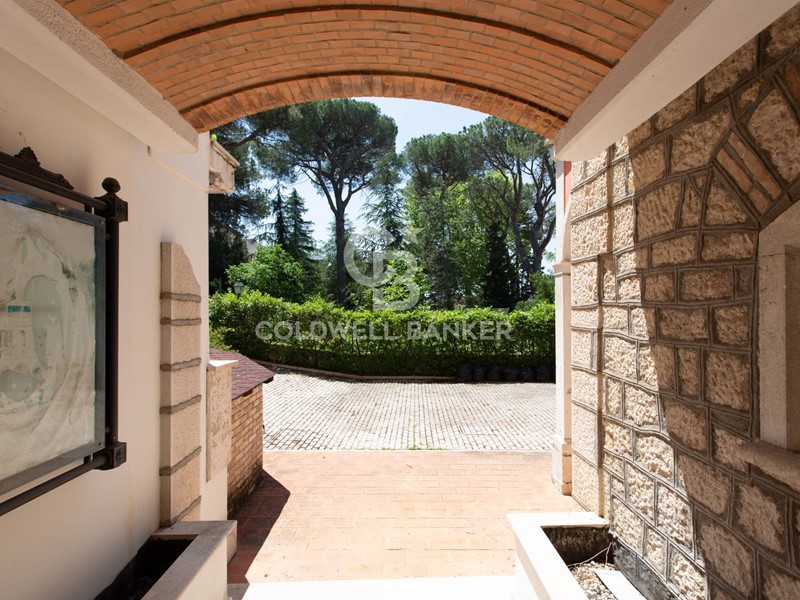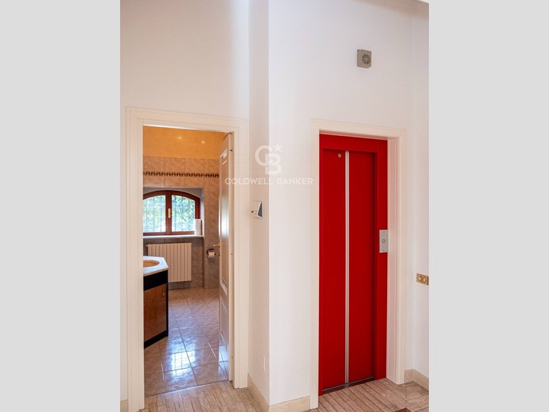 La villa è servita da un ascensore interno che collega comodamente tutti i piani. Il giardino con corte piastrellata consente il parcheggio di almeno tre auto e offre uno spazio esterno riservato, perfetto anche per eventi o momenti di relax.