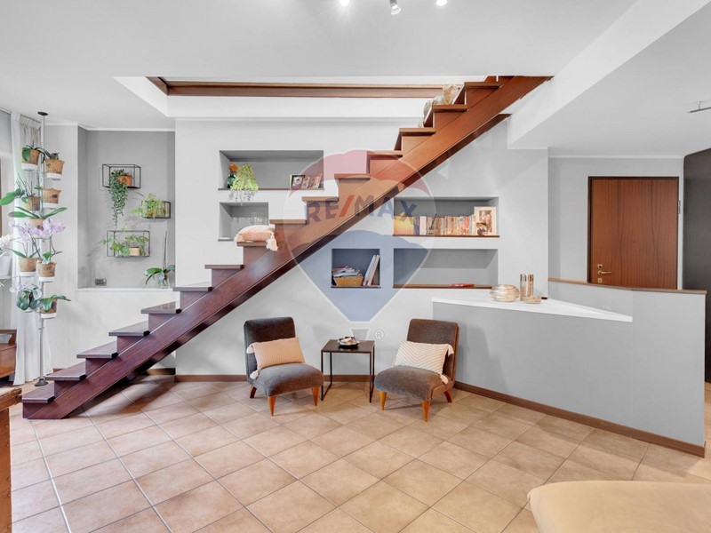 L'appartamento si sviluppa su due livelli, al terzo e quarto piano, ed è così composto: ingresso su un ampio soggiorno con accesso al balcone che si estende lungo lintera facciata dellabitazione, cucina abitabile anchessa con porta finestra sul balcone, ripostiglio, bagno con vasca e doccia e una prima camera matrimoniale. L'ampio balcone che si affaccia esclusivamente sul giardino interno è ideale per pranzi e cene all'aperto.