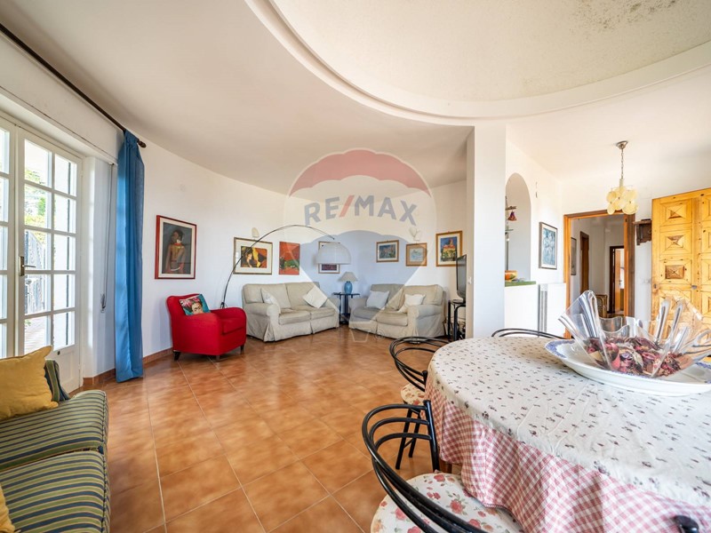 L'immobile è cosi distribuito al Piano terra l'ampio porticato, comodo e adatto per cene conviviali con vista mare si accompagna ad una delle due luminose zone living caratterizzata dalla sua forma rotondeggiante.