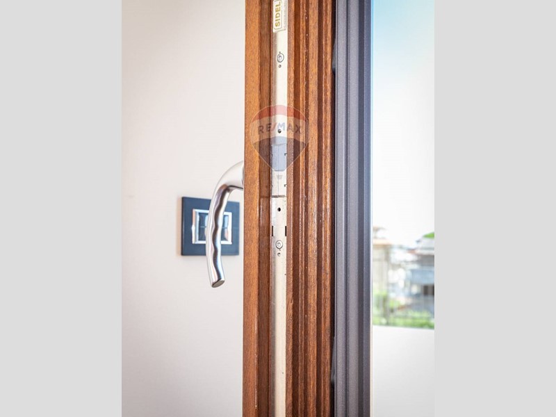 Su tutte le porte sono stati utilizzati degli infissi in legno alluminio della Sidel con tecnologia di antifurto perimetrale invisibile.