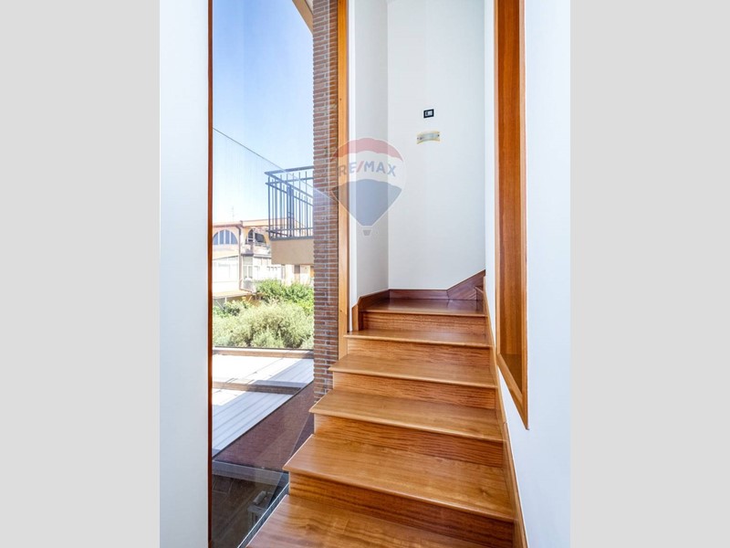La casa è pavimentata a tappeto con parquet Doussie. Le pareti perimetrali oltre ad essere fatte con mattoni in cemento anti scasso sono abbellite con degli splendidi mattoncini in cotto siciliano.