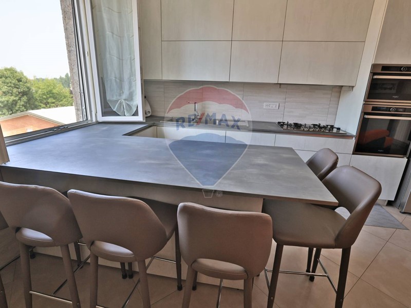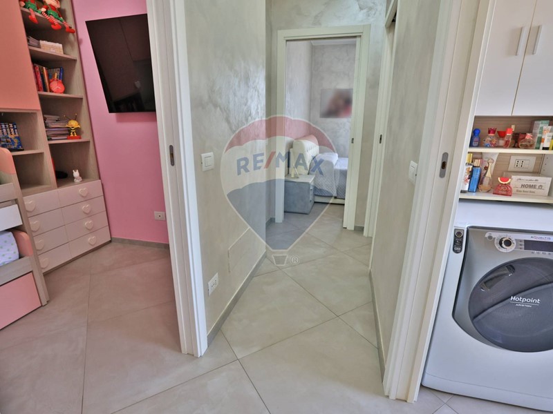 Le finiture di pregio includono sanitari sospesi Ideal Standard, serramenti in PVC Square Plus con doppi vetri e zanzariere, tapparelle elettriche WiFi, cassonetti coibentati, portoncino blindato con cilindro europeo, porte interne eleganti con telaio scrigno Gold, controsoffitti con faretti LED e pareti rasate a gesso e pitturate con tecnica spatolata effetto perla. Sul balcone è installata una tenda da sole Para Tempotest.