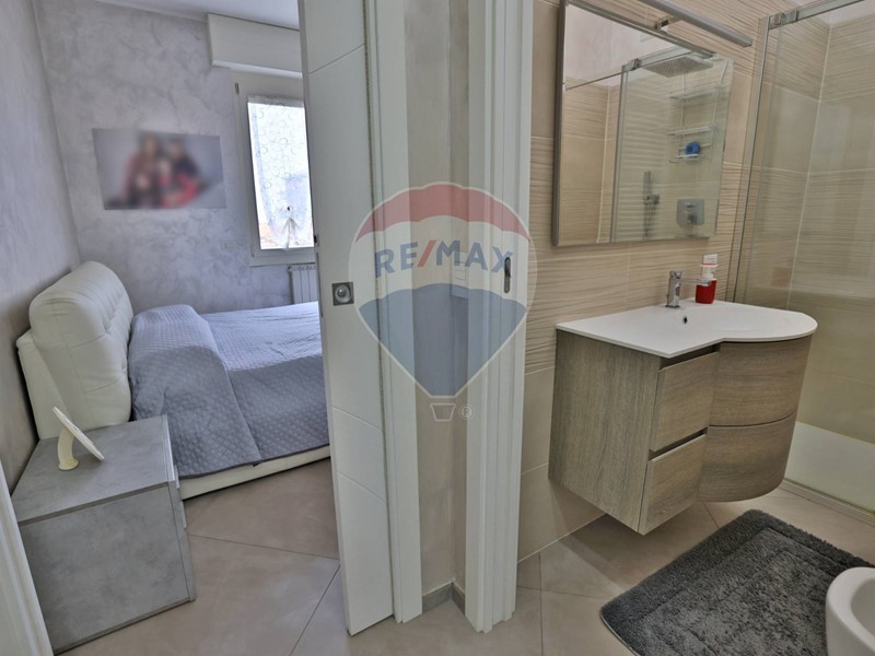 La zona giorno è luminosa e accogliente, con cucina a vista completamente attrezzata che si affaccia su un balcone vivibile. La zona notte offre due camere da letto e doppi servizi moderni e di design, equipaggiati con piatto doccia in pietra Geberit, box doccia Vismara in acciaio e vetro antigraffio, vasca idromassaggio, rubinetteria Ideal Standard e specchiera con LED e Bluetooth.