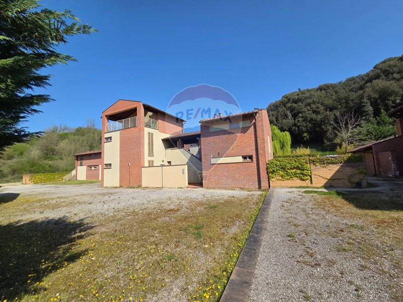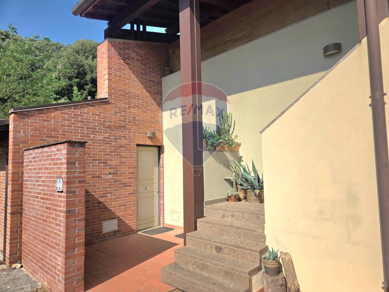 L'edificio in cui è situato l'appartamento è caratterizzato da una facciata in mattoni a vista, tipica delle costruzioni toscane, e dispone di un parcheggio condominiale per i residenti.