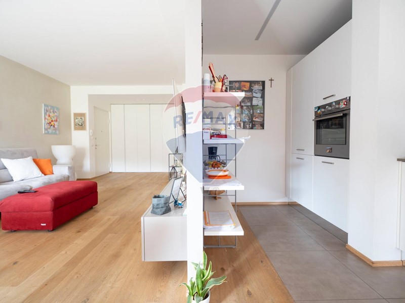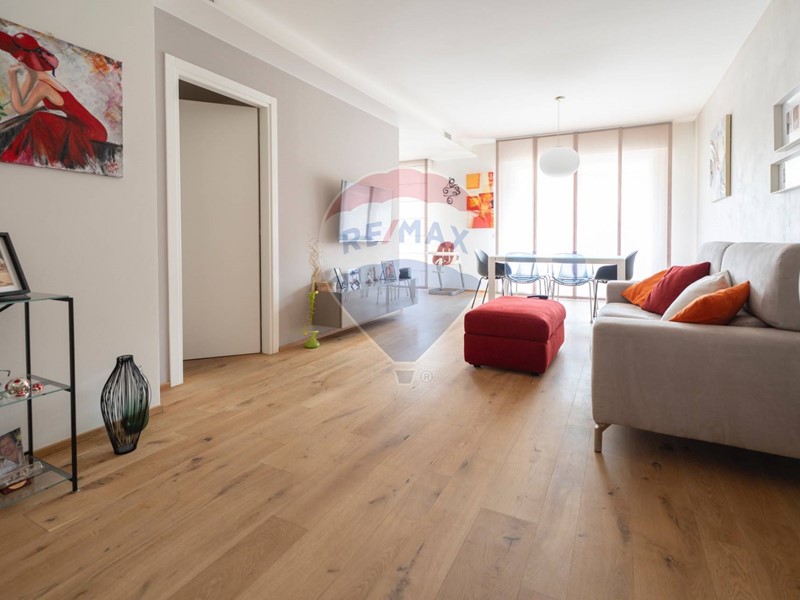 Questo appartamento di nuova costruzione (2014), situato al primo piano, unisce eleganza e comfort con 82 mq di superficie abitabile, perfettamente organizzati in un open space soggiorno-cucina di 35,5 mq, ampio e luminoso.