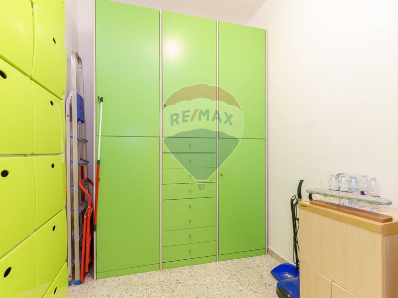 Cucina abitabile e ripostiglio attrezzato con 20 scarpiere e armadio a 3 ante