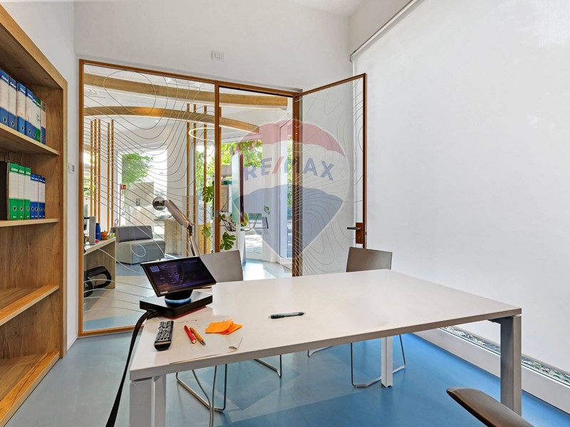 - piano terra : ampio openspace luminoso con uffici suddivisi da pareti mobili e due bagni
