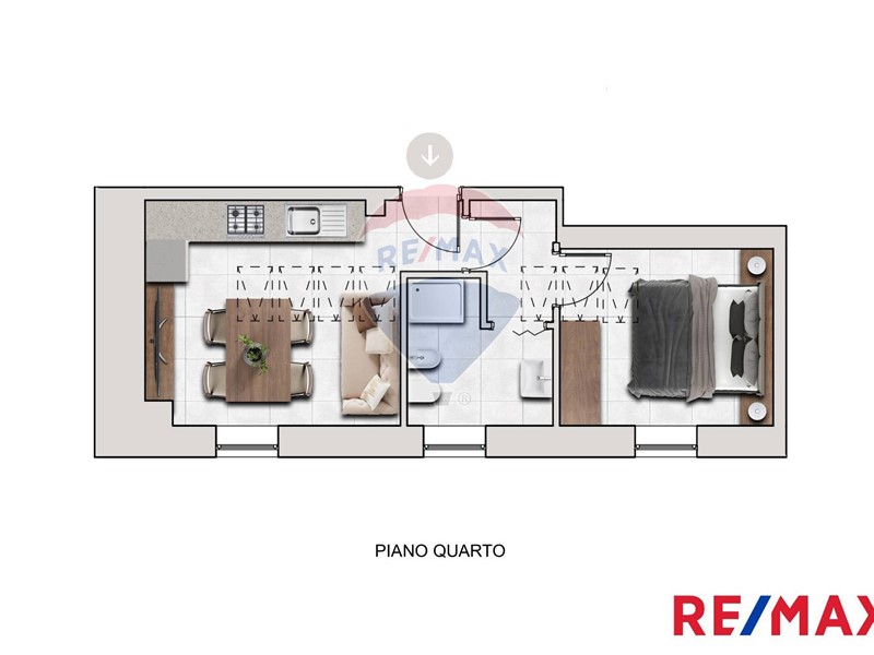 Lapparentamento viene venduto completo di mobili e arredi ed è così composto: zona giorno con cucina a vista, disimpegno che separa gli ambienti, camera matrimoniale e bagno finestrato; completa la proprietà un comodo e funzionale ripostiglio a piano interrato.