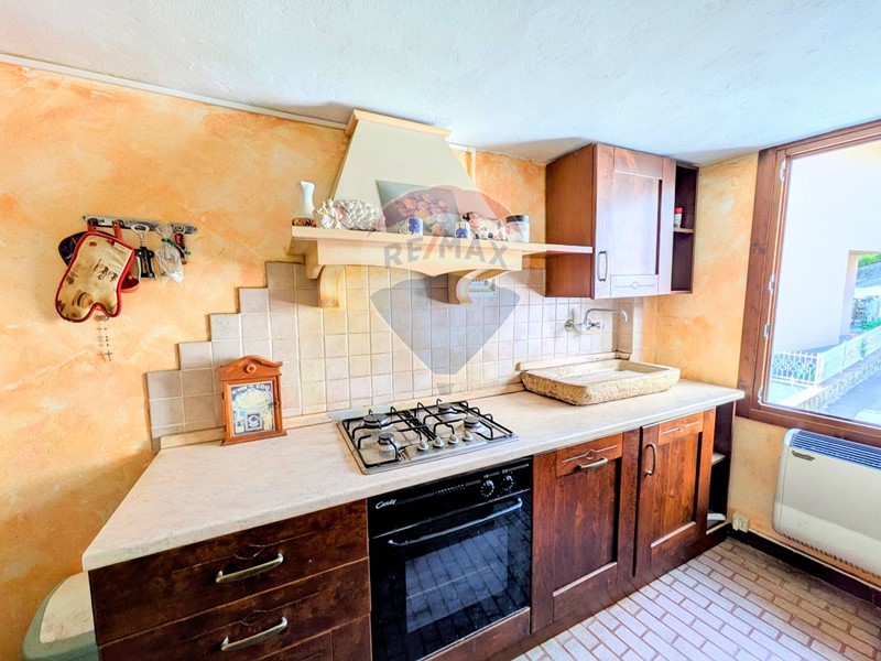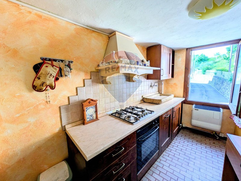 Dal portoncino d'ingresso accediamo alla zona giorno composta da living con stufa a pellet, cucina abitabile con arredi ottima fattura e primo bagno di servizio.