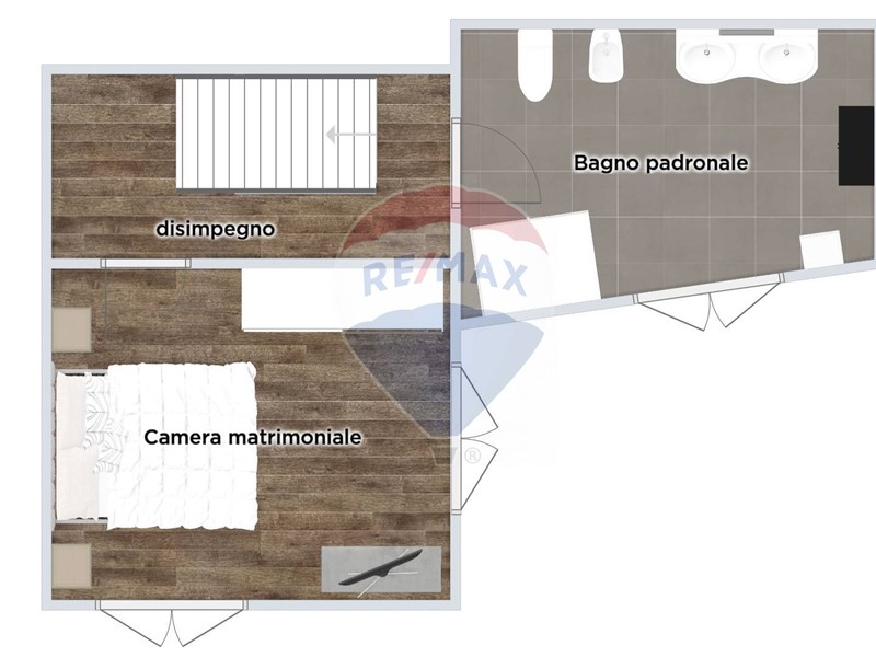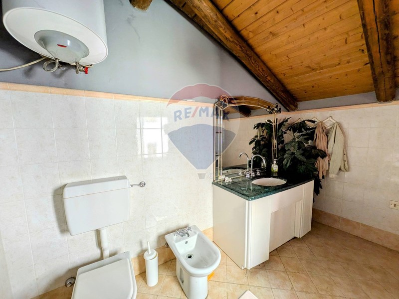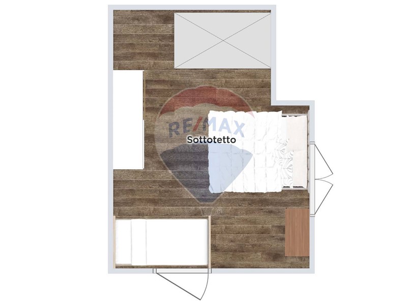 Percorrendo la scala interna raggiungiamo poi la zona notte composta da camera matrmoniale con doppia esposizione, bagno padronale finestrato con doccia e un'ulteriore scala che conduce alla mansarda finestrata con travi a vista dove troviamo altri tre posti letto.