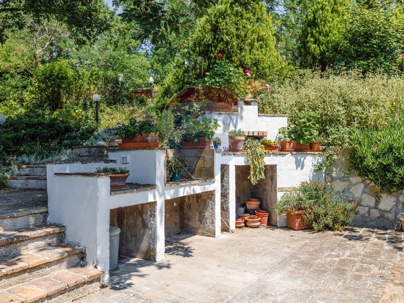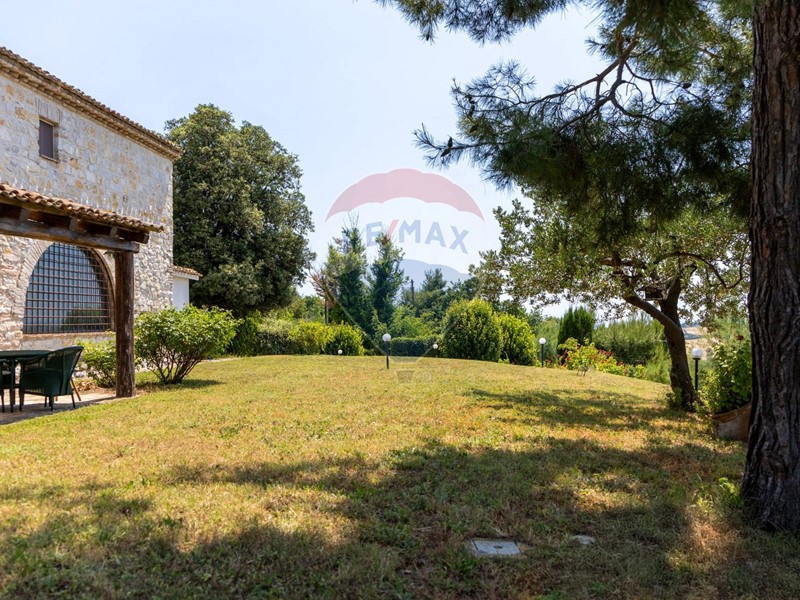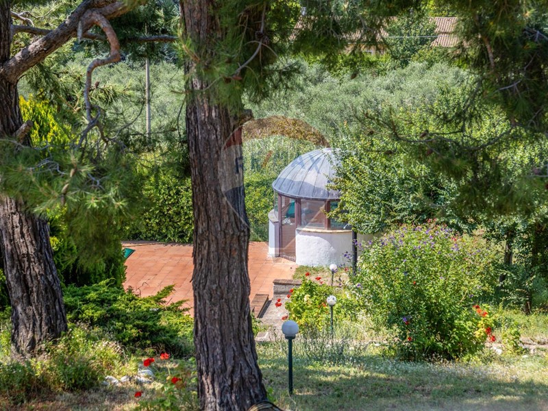 Ad abbracciare la proprietà, un terreno di circa 75.000 mq che comprende un giardino paesaggistico curato nei minimi dettagli, 700 piante di oliveto, piante da frutto, una piscina panoramica con vista sul promontorio e mare, un campo da tennis privato, un bosco, un oliveto e terreni agricoli. Gli esterni offrono un connubio di estetica e funzionalità, con scorci sempre nuovi che cambiano con la luce del giorno e delle stagioni.
