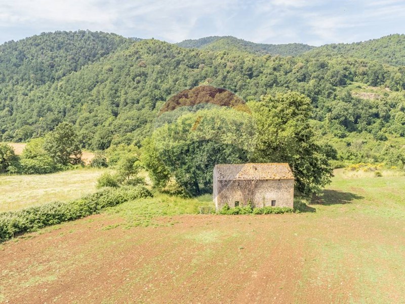 Il terreno è suddiviso in due corpi:  ca. 4 ettari pianeggianti a ridosso del fiume Fiora, con sovrastanti due fabbricati agricoli per una superficie di 85 metri catastali, e Terreno seminativo di ca.7 ettari, con 5, 4 ettari di bosco. Il casale con il suo stile rustico si integra perfettamente con l'atmosfera della campagna circostante, offrendo un'esperienza di vita autentica e rilassante, sono presenti querce secolari e due torrenti che rendono la zona ancora più incantevole.