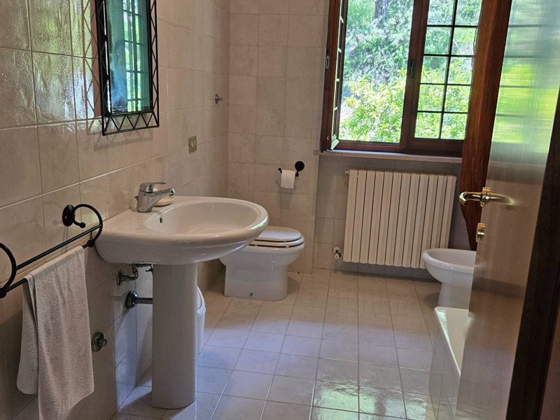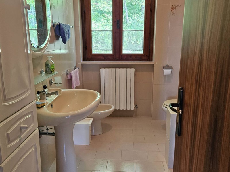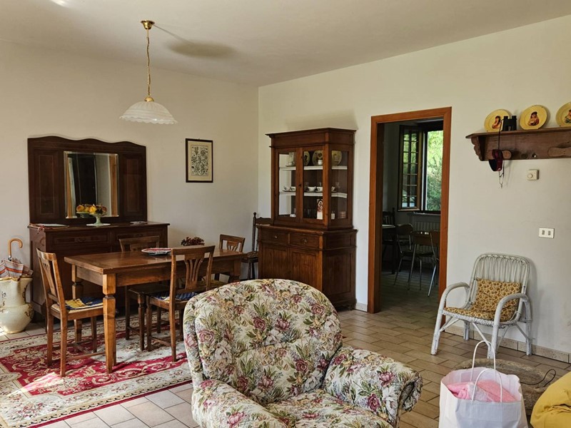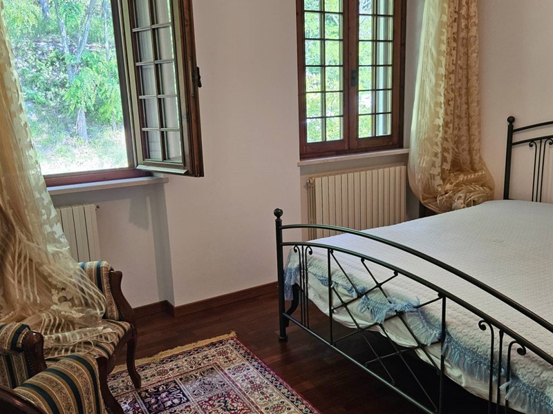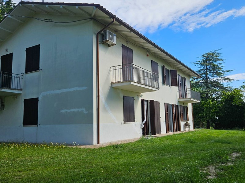 415.000. RUSTICO/VILLA BIFAMILIARE. Serrungarina, piccolo borgo medioevale, completamente immersa nel verde delle dolci colline dell'entroterra fanese, in posizione elevata, vendiamo VILLA/RUSTICO BIFAMILIARE completamente indipendente. L'abitazione, gode di una meravigliosa vista panoramica, è divisa in 2 unità abitative cielo-terra, ognuna delle quali con esclusivo ingresso indipendente e sviluppata su 2 livelli: la 1° soluzione è stata rivista nel tempo, ha buone rifiniture ed è pronta per essere abitata, si compone di: comodo ingresso su grande e luminoso salone con camino, cucina abitabile, disimpegno, ripostiglio/lavanderia e bagno finestrato con doccia al piano terra; da comoda scala interna si accede al 1°piano in cui si sviluppa la zona notte con 4 camere matrimoniali, di cui 2 con balcone e bagno finestrato con vasca. Garage di pertinenza. Parquet zona notte. Infissi, stile inglese, in legno e vetro camera completi di zanzariere. Riscaldamento autonomo a GPL. La 2°soluzione richiede pochi lavori di ammodernamento si compone di: ingresso su salone con camino, cucina abitabile, ripostiglio, vano caldaia e bagno al piano terra; da comoda scala interna si accede al disimpegno del 1°piano, 3 camere matrimoniali, di cui 2 con balcone e bagno finestrato. Garage di pertinenza. Riscaldamento a gasolio. L'intera proprietà è circondata da un grande giardino con pozzo per irrigazione e da un fiabesco boschetto attraversato da una piccola sorgente, piantumato da querce, pini e ulivi. Soluzione ideale per una famiglia in crescita, per chi è alla ricerca di ampi ed esclusivi spazi in totale privacy lontano dal traffico cittadino o addirittura per chi ha voglia di realizzare ed investire in un B&B. Riscaldamento autonomo. Classe energetica in fase di realizzo. Rif.: C/345