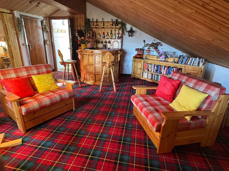 - Pavimento in moquette scozzese, perfettamente in tema con latmosfera alpina