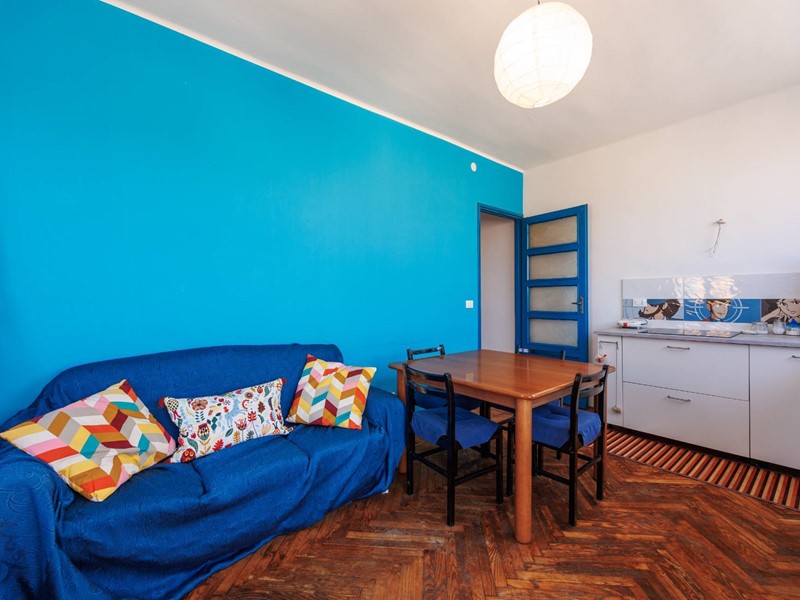 Internamente è composto da ingresso su ampio disimpegno, zona giorno con cucina a vista e accesso al terrazzo, due camere da letto e un bagno. Soffitta di pertinenza.