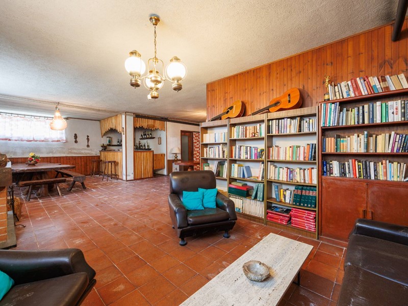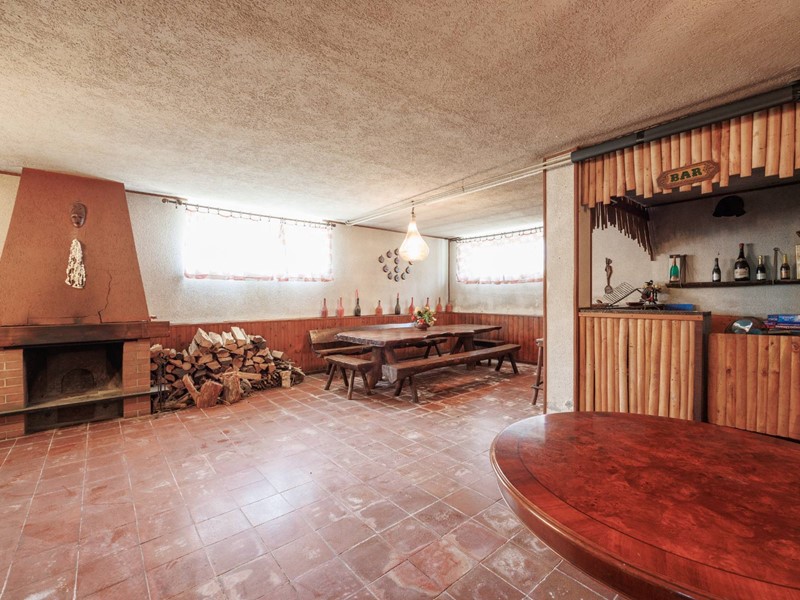 -al piano seminterrato: grande tavernetta rustica con camino funzionante, bancone bar, cantina e spaziosa autorimessa.