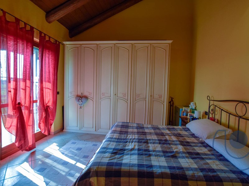 Tramite una comodissima scala interna, si accede al piano superiore, interamente strutturato con travi a vista piemontesi e capriate. Tutto l'intero tetto è stato coibentato con ISOTEC garantendo un'ottima coibentazione e un eccellente risparmio in termini di riscaldamento. L'ambiente è composto da tre camere, bagno con vasca idromassaggio e ulteriore servizio completo adibito anche a locale lavanderia.