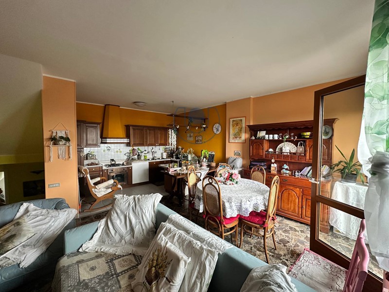 Ingresso su ampio soggiorno con zona pranzo e angolo cottura