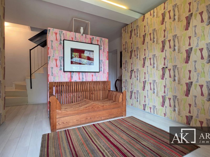 Al secondo e ultimo piano con soffitto in legno travi a vista, due camere e due bagni di charme.