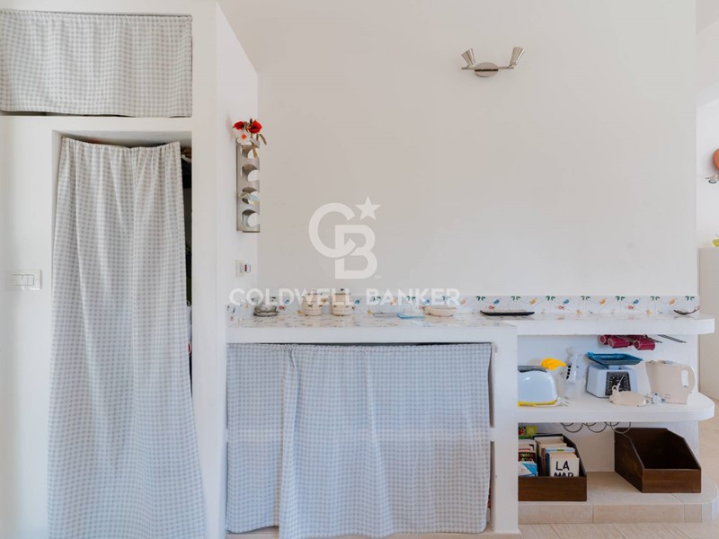 Il cuore della casa è un ampio open-space con cucina in muratura su misura, impreziosita da dettagli in maiolica vietrese fatta a mano: una perfetta fusione tra tradizione artigiana e stile mediterraneo.