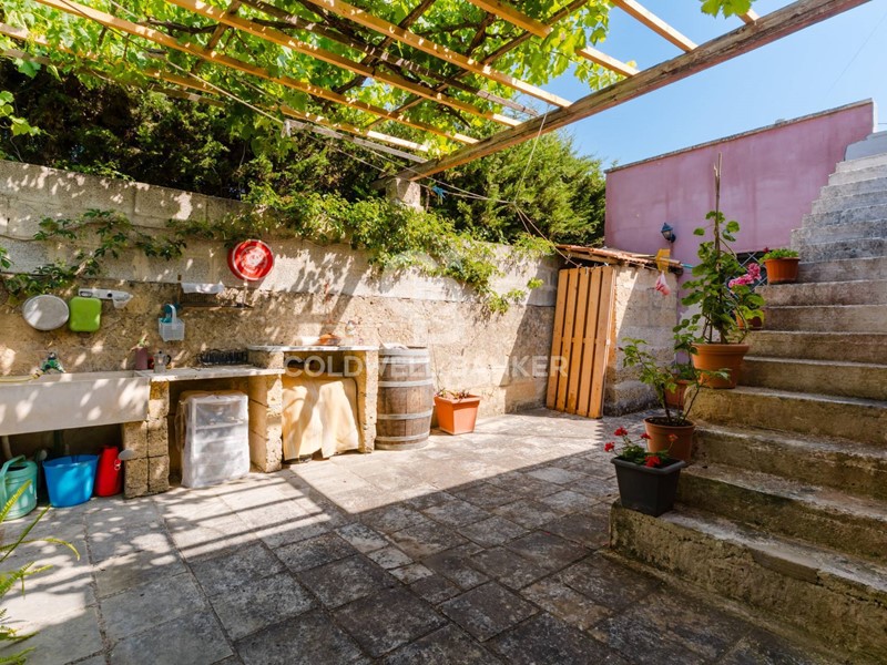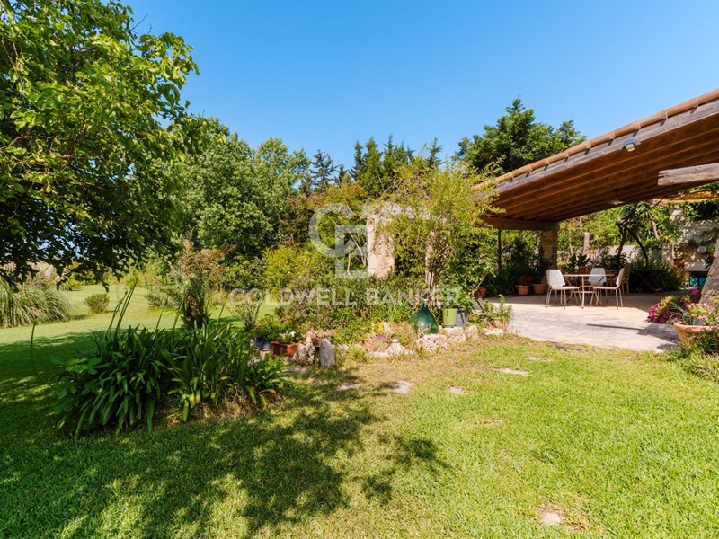 Il giardino è servito da impianto di irrigazione automatica, pozzo privato, punti dacqua strategici e rivestimenti in pietra locale che esaltano lanima salentina della proprietà.