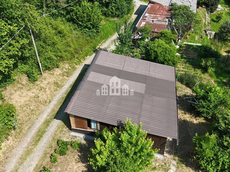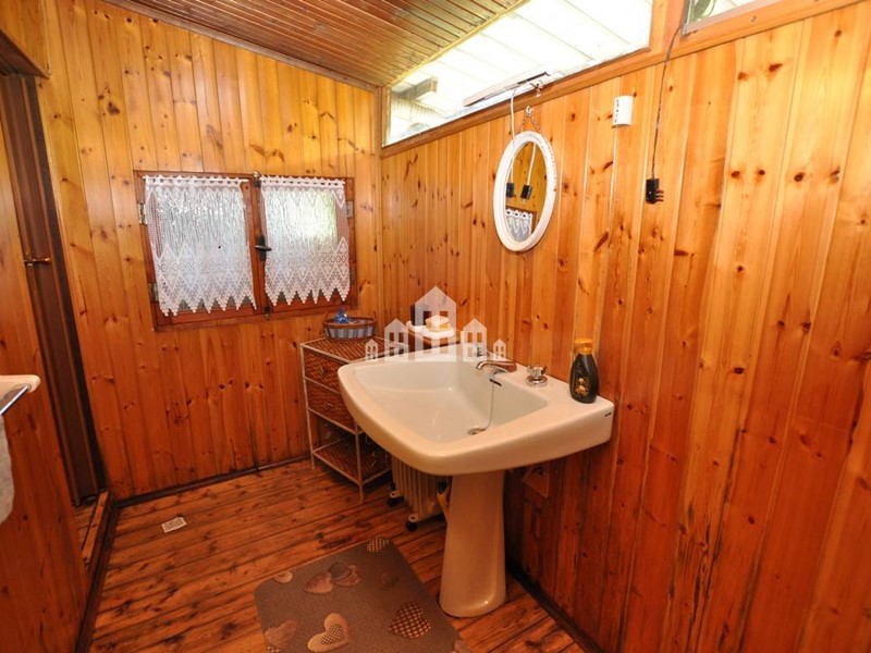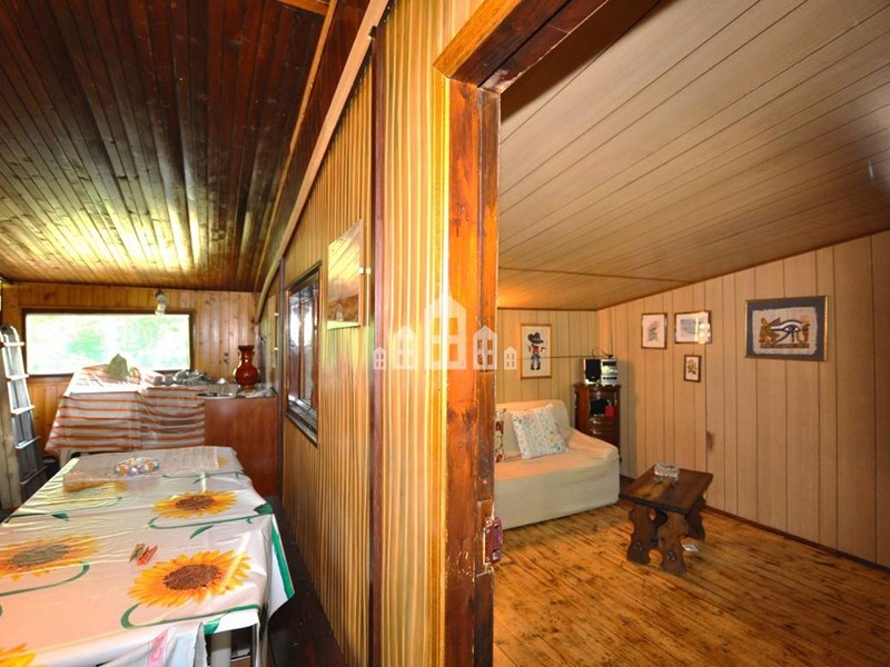 La casa si trova alla fine di un breve tratto di circa 50 metri di strada sterrata pianeggiante, comoda da percorrere. Si tratta di un prefabbricato in legno, completamente disposto su un unico livello, perfetto per chi desidera vivere tutto su un piano.