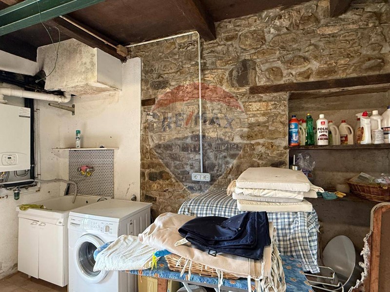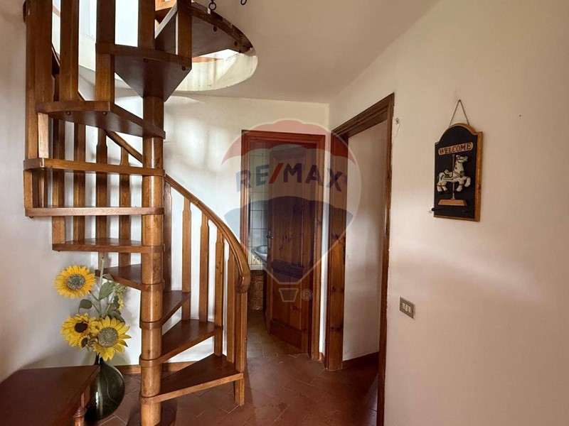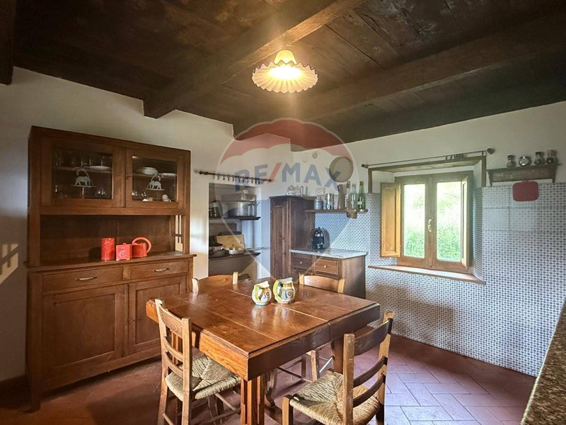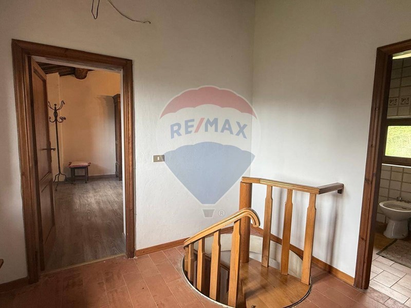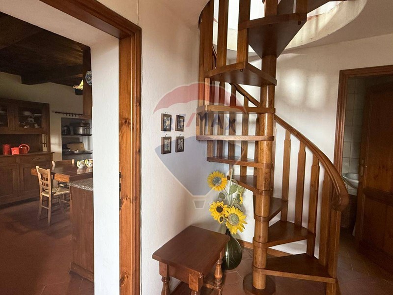 Il casale principale si sviluppa su tre livelli per una superficie complessiva di circa 242 mq, ed è libero su tre lati. Il piano terra ospita due cantine e una comoda lavanderia. Salendo, si accede al primo piano tramite una scenografica scala in pietra che conduce a una grande terrazza coperta con loggia, perfetta per cene al tramonto e momenti di relax con vista sulle colline. Allinterno, ambienti ampi e luminosi: un soggiorno con camino in pietra, una sala da pranzo conviviale, una cucina in stile rustico, bagno e disimpegno. Al secondo piano si trovano due camere da letto e un secondo bagno.
