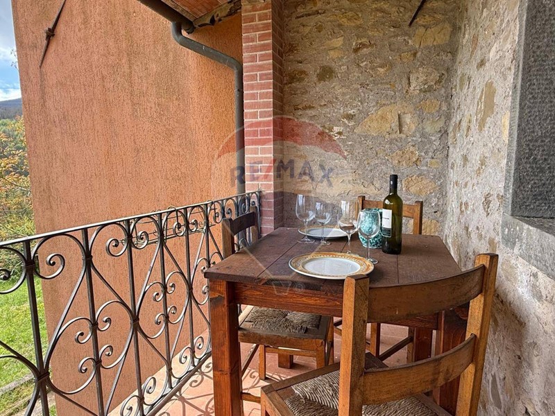La dependance, completamente autonoma e libera su quattro lati, si sviluppa su due livelli (circa 96 mq totali) ed è perfetta come guest house o spazio per affitti turistici. Comprende cucina/tinello, disimpegno, camera matrimoniale, bagno con doccia e una veranda coperta affacciata sul cortile, ideale per colazioni allaperto. È dotata anche di forno a legna, perfetto per vivere la convivialità tipica toscana.