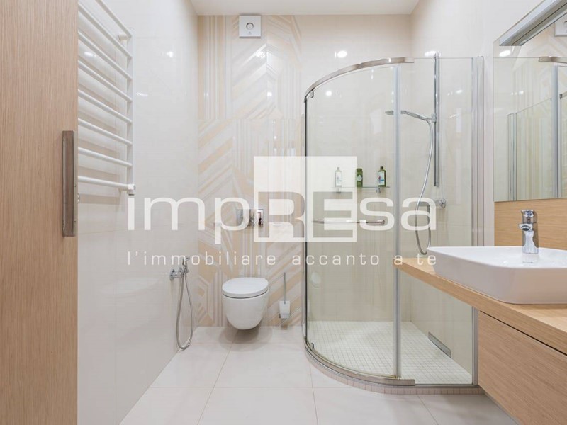 Lingresso si apre su unampia zona living open space con soggiorno e cucina a vista, impreziosita da unampia vetrata scorrevole che illumina gli ambienti e offre accesso diretto al terrazzo, dove poter allestire una zona esterna con un salottino.