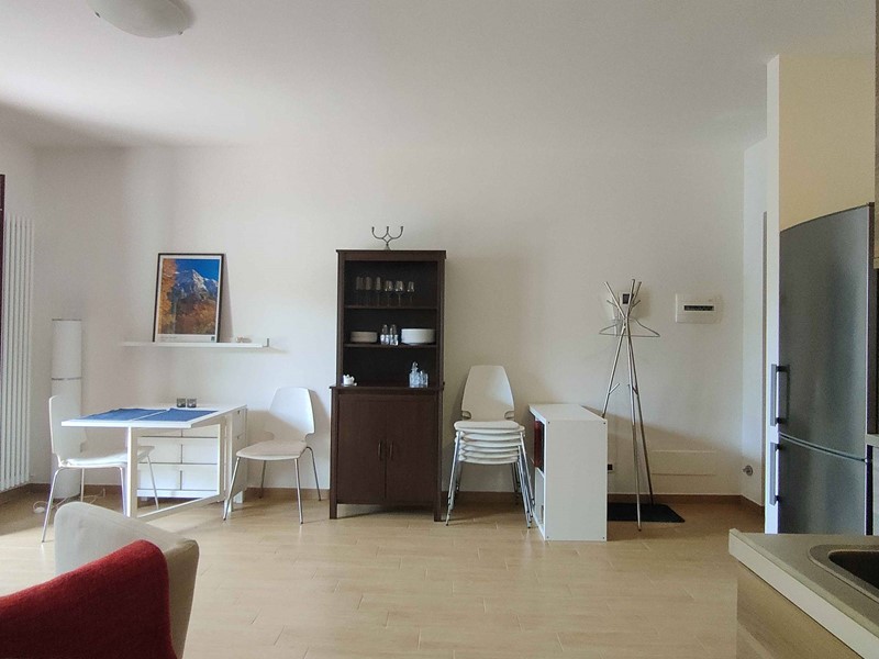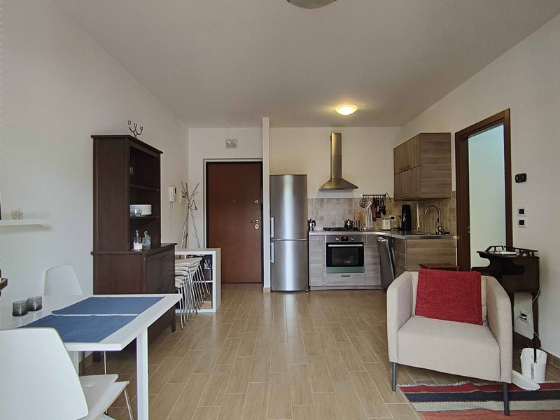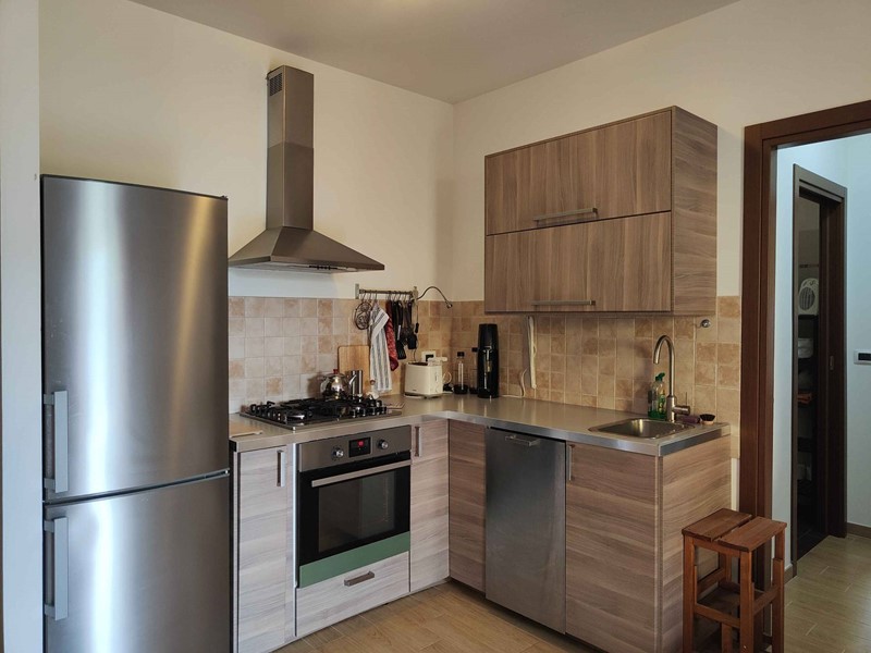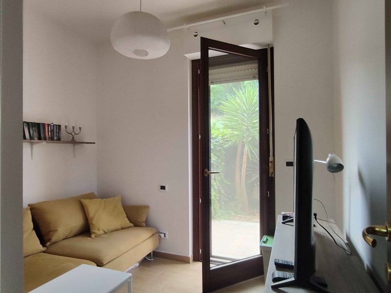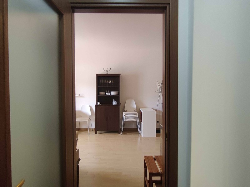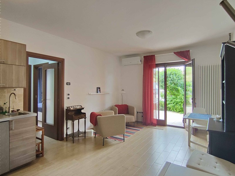 L'immobile è così composto: ingresso su soggiorno con angolo cottura, disimpegno, una camera matrimoniale, un bagno con doccia e finestra ed uno studio (adibito a cameretta), oltre all'ampia corte esterna accessibile da tutte le stanze dell'alloggio ed esposta prevalentemente a sud che si presta ad essere vissuta per molti mesi all'anno, oltre ad essere utilizzabile anche come posti auto, in quanto dotata di ingresso carrabile.